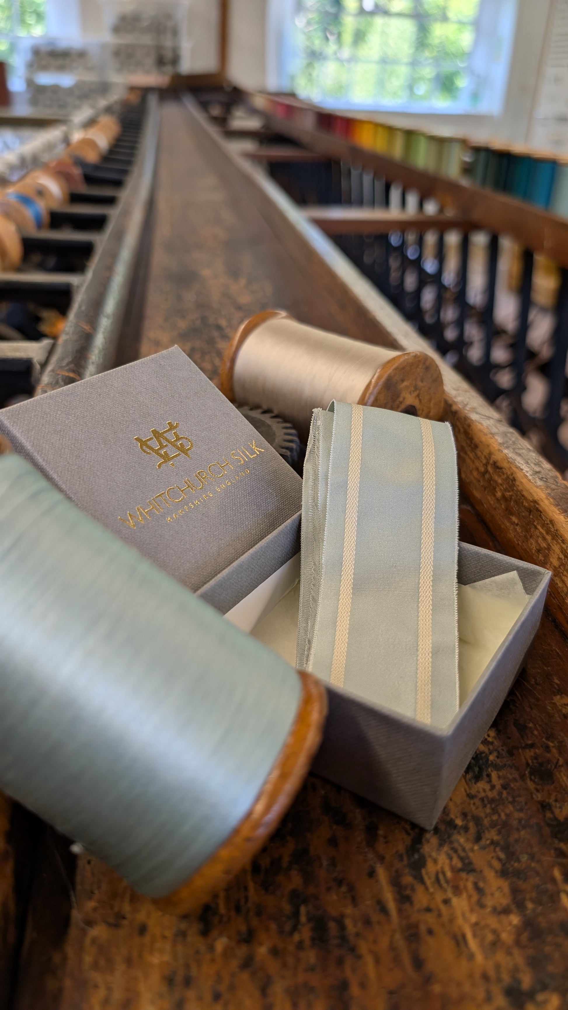 Inspired by the colours and story of the hit Netflix show Bridgerton, these exclusive edition ribbons have been designed and woven at the Mill, breathing new life into the critically endangered craft of silk ribbon weaving.
