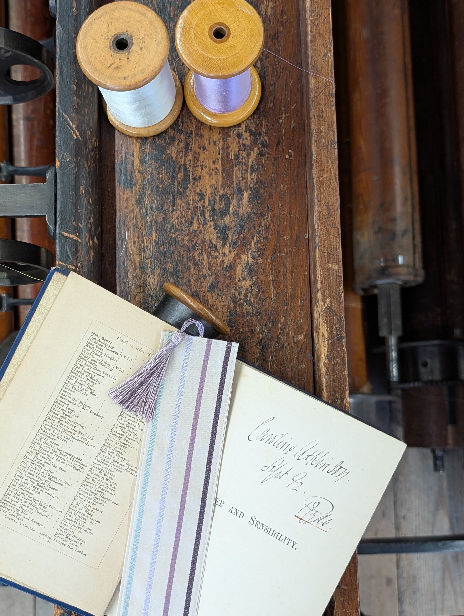 This ‘Penelope’ silk bookmarks are made with the ribbon woven as part of a collaborative project with Jane Austen’s House.