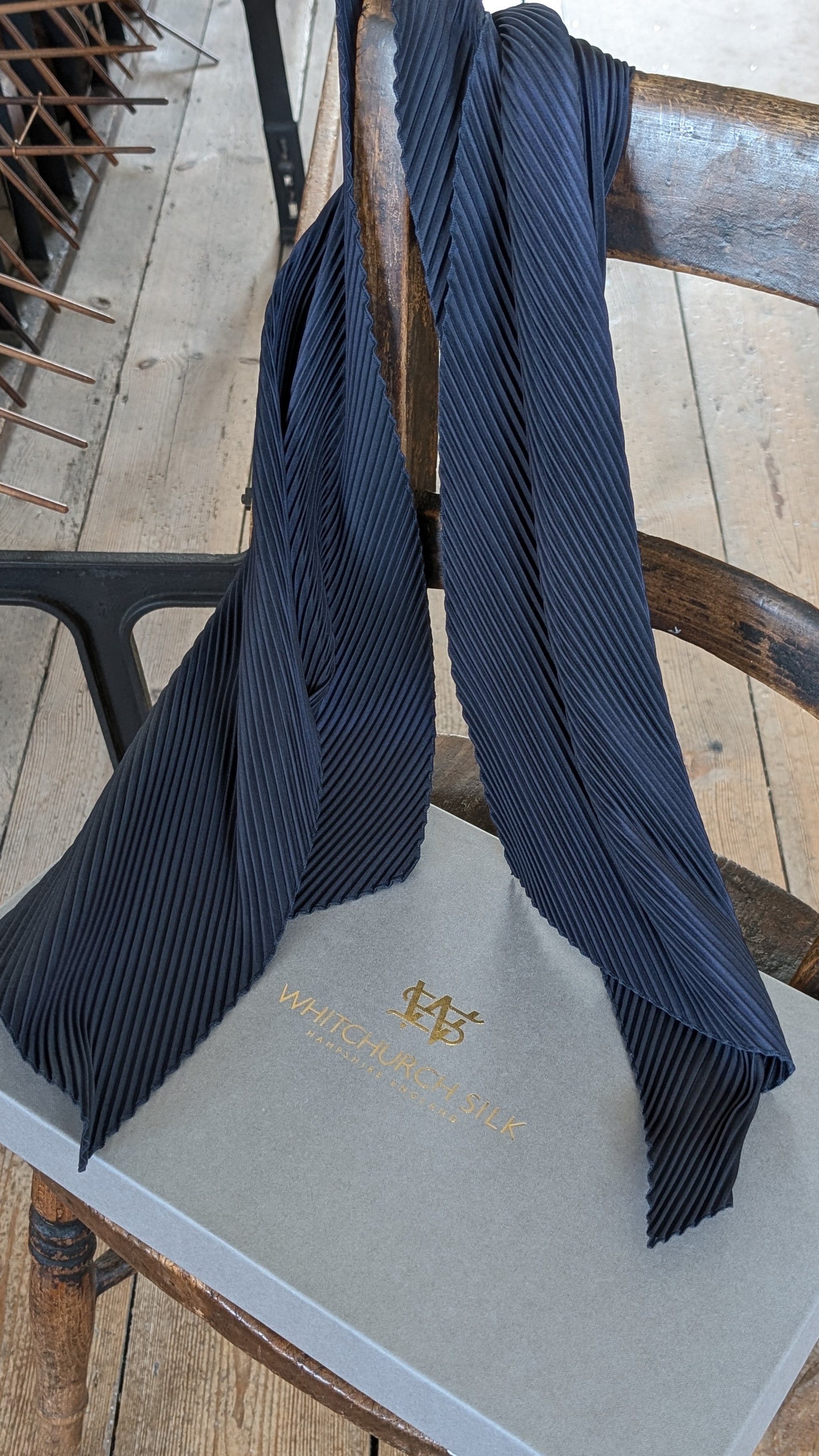 This scarf was woven on our historic looms by our team of highly skilled weavers here at Whitchurch Silk Mill, before going to the oldest pleaters in the UK for fine crystal pleating. With rich, iridescent tones, this absolutely stunning scarf hangs beautifully and is the perfect gift for someone special.